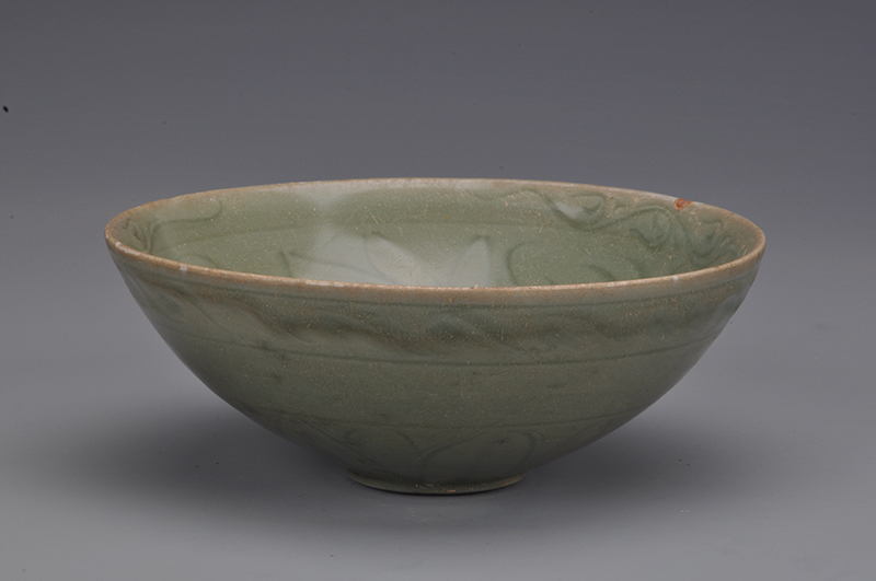 现代青釉刻划莲纹碗