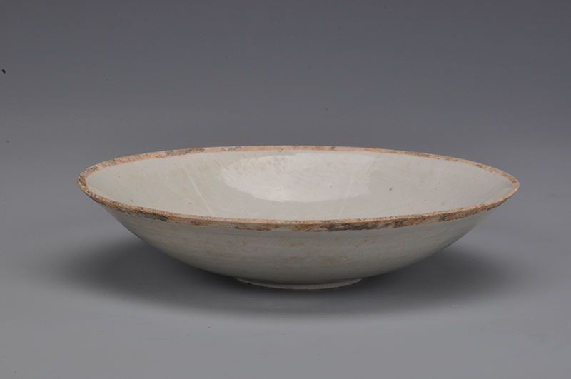现代青白釉印双鱼纹芒口浅腹碗