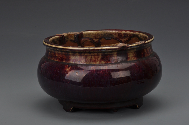 民国红釉短颈三足炉