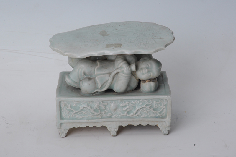 现代青白釉莲童座枕