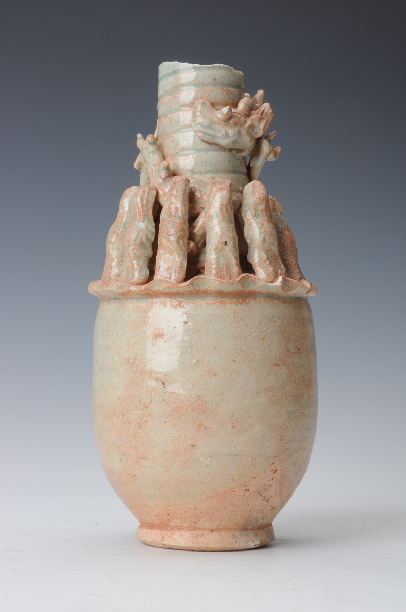 宋青白釉堆塑龙纹瓶