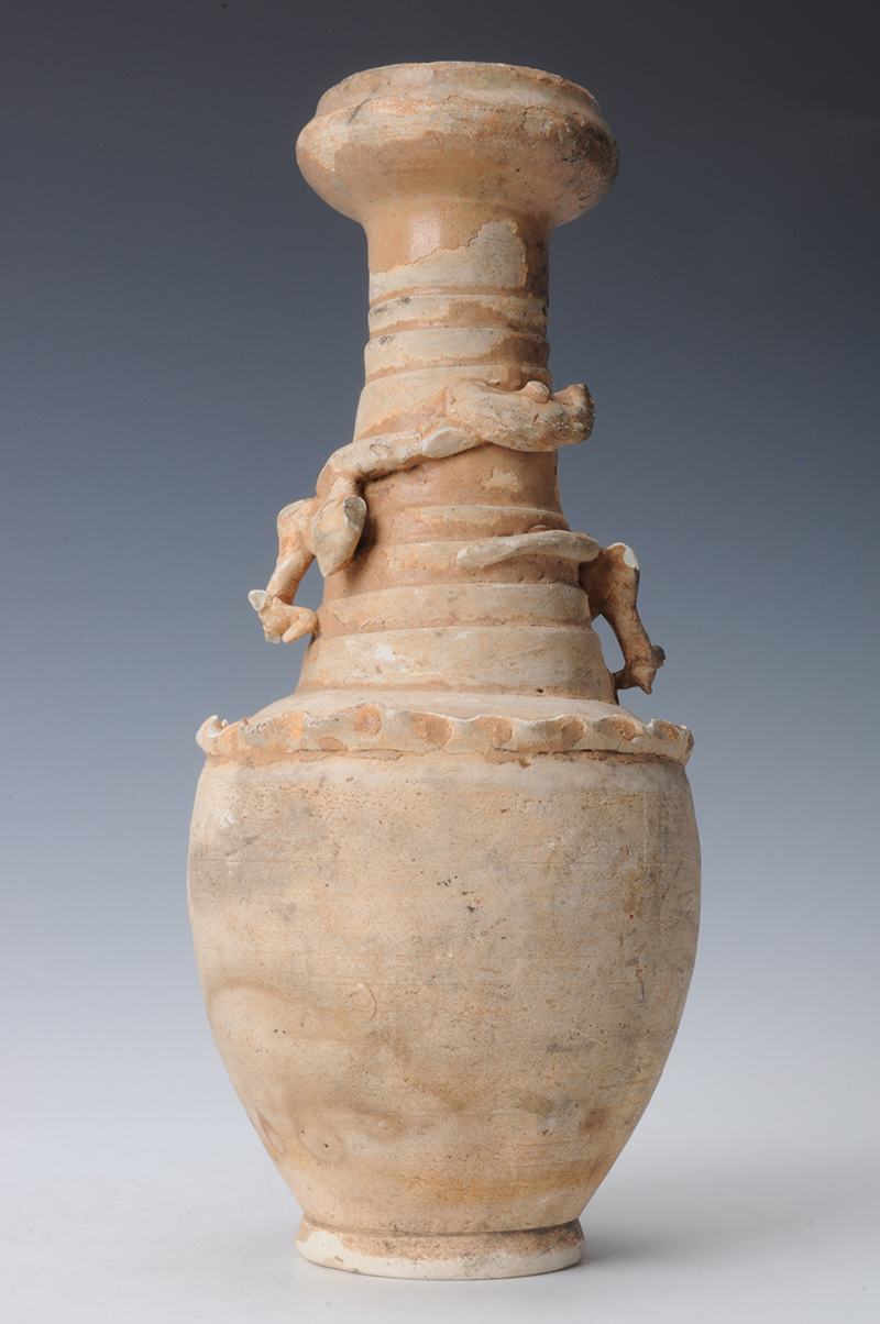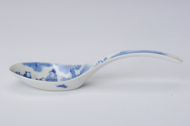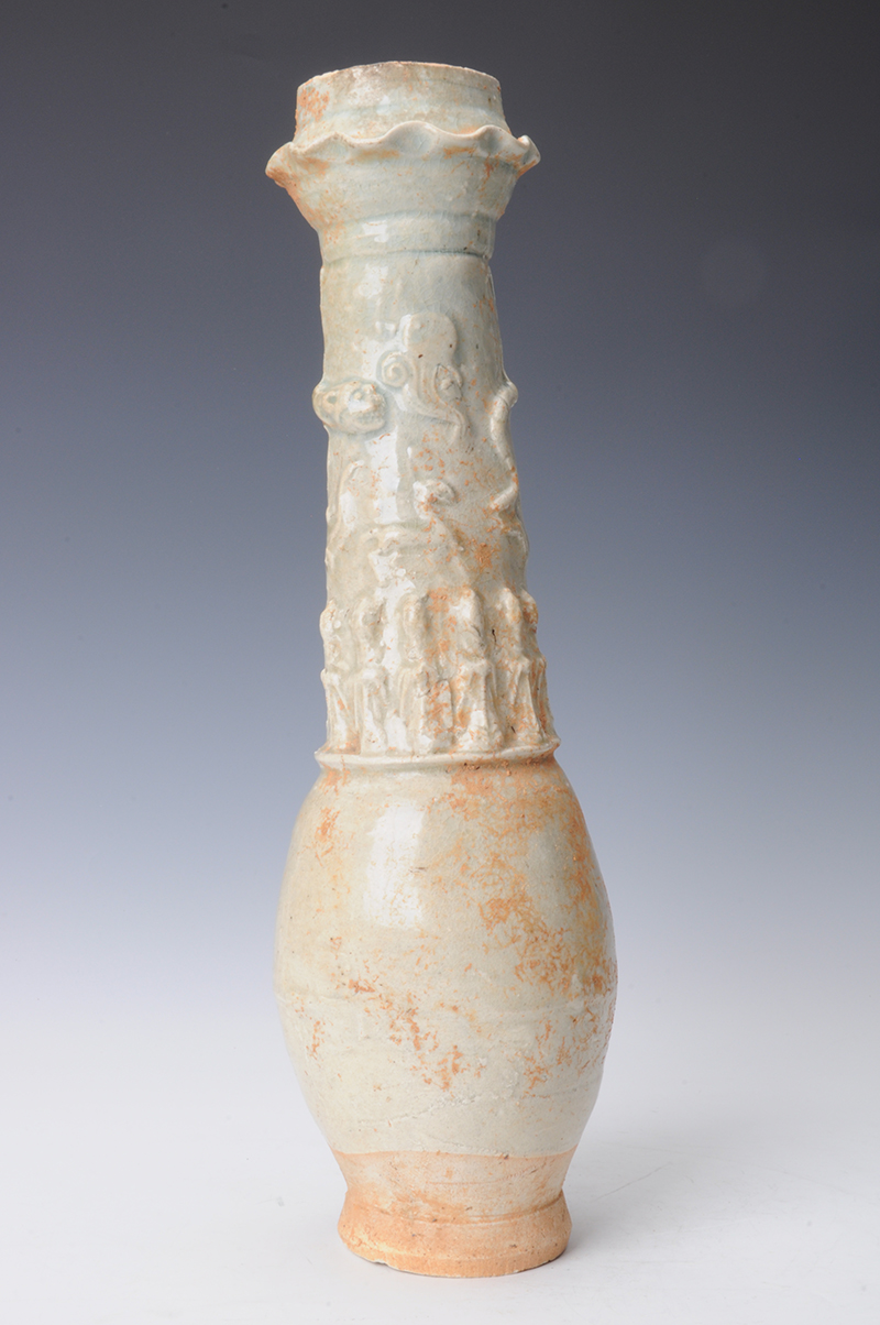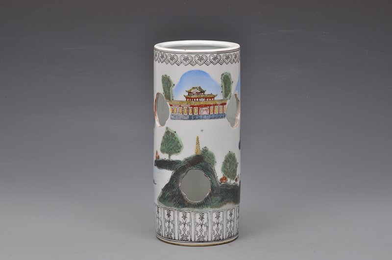 现代乾隆款白釉加彩山水楼阁图帽筒