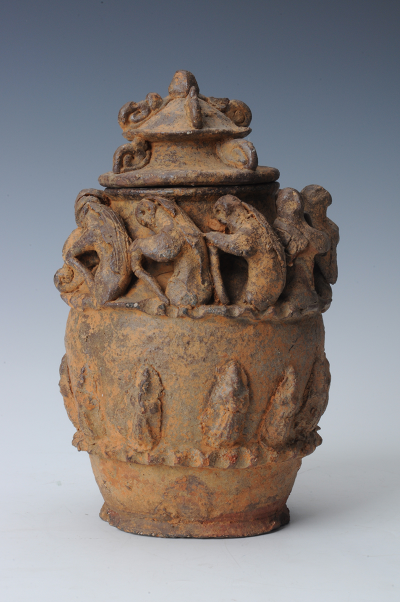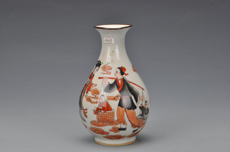 现代乾隆款白釉加彩牛郎织女图玉壶春瓶