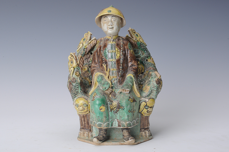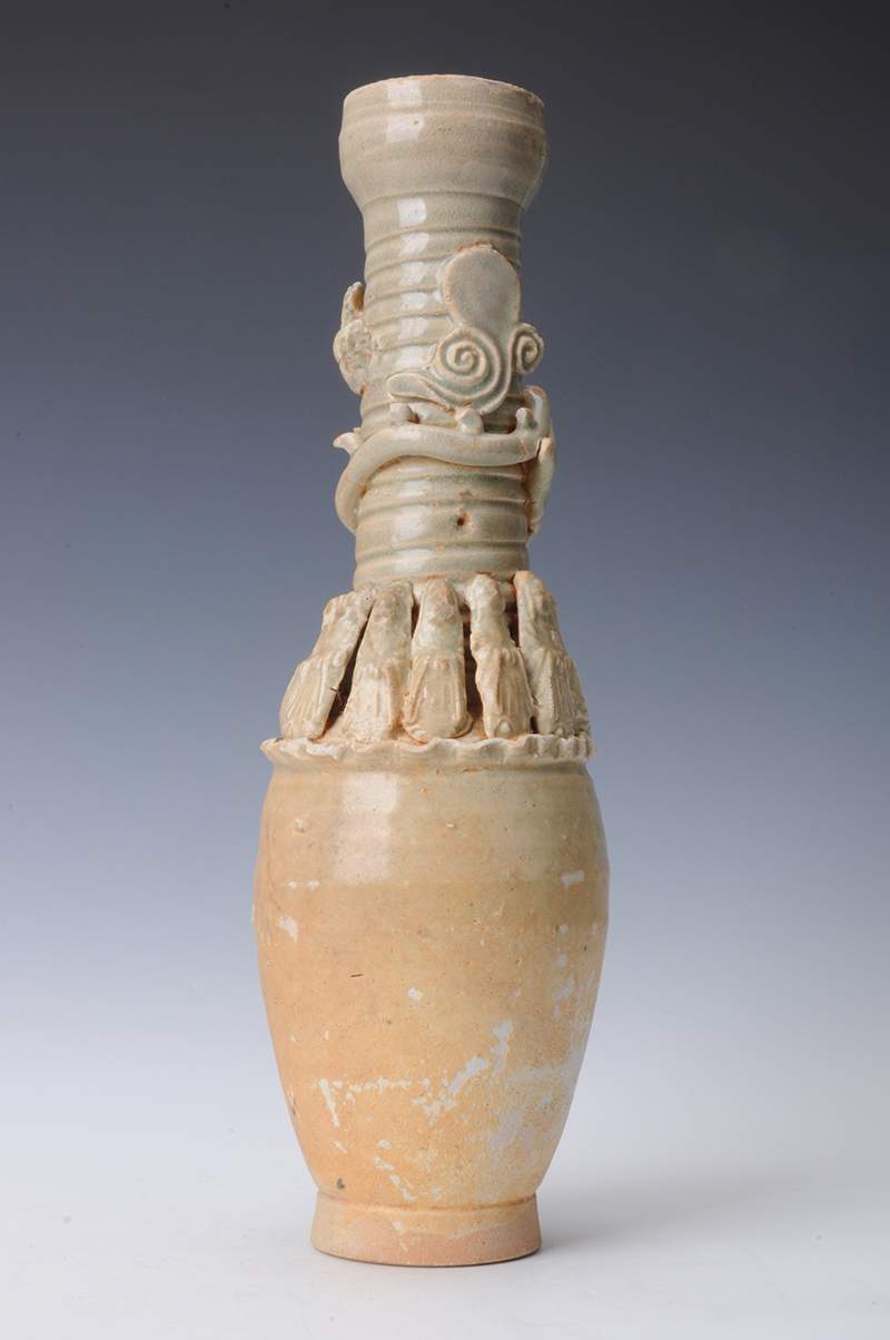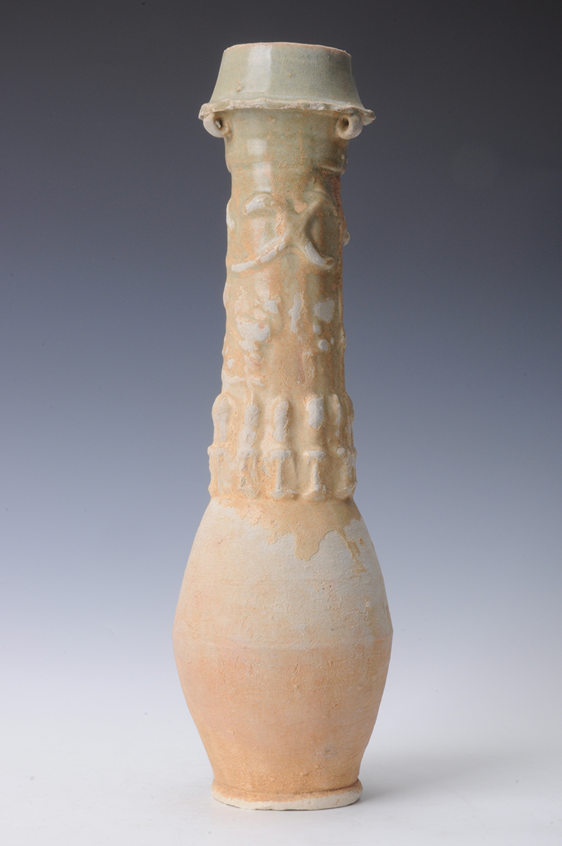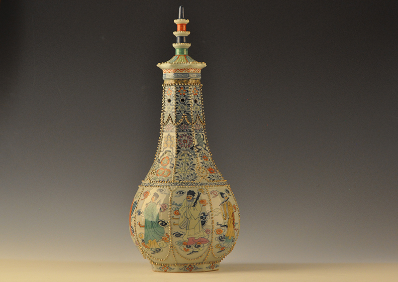 现代白釉加彩八仙图长颈塔纽盖瓶
