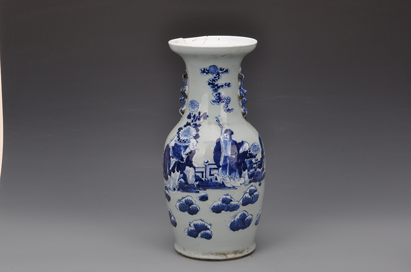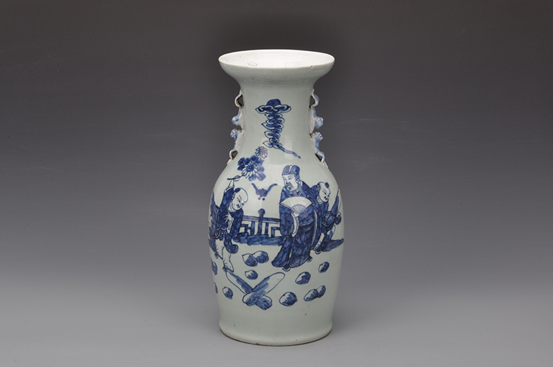 民国豆青地青花福寿图螭耳瓶