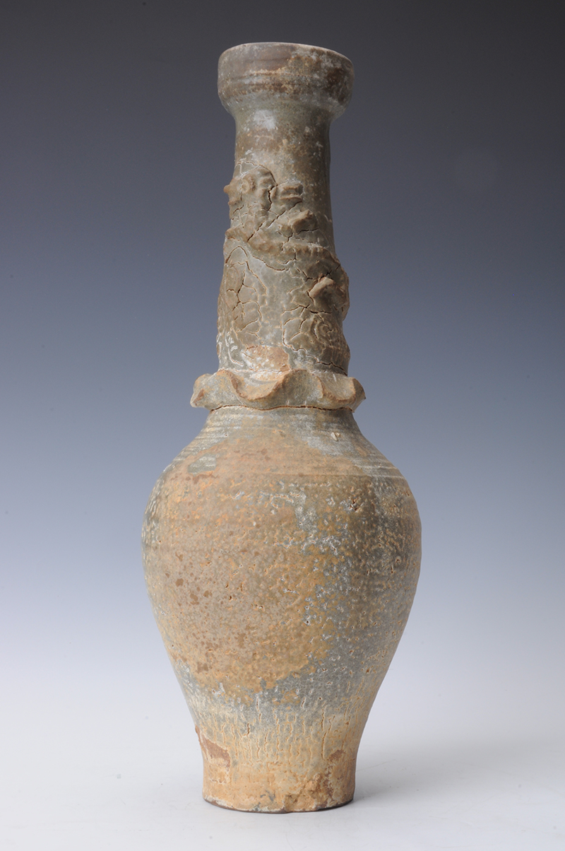 宋青釉堆塑龙纹瓶