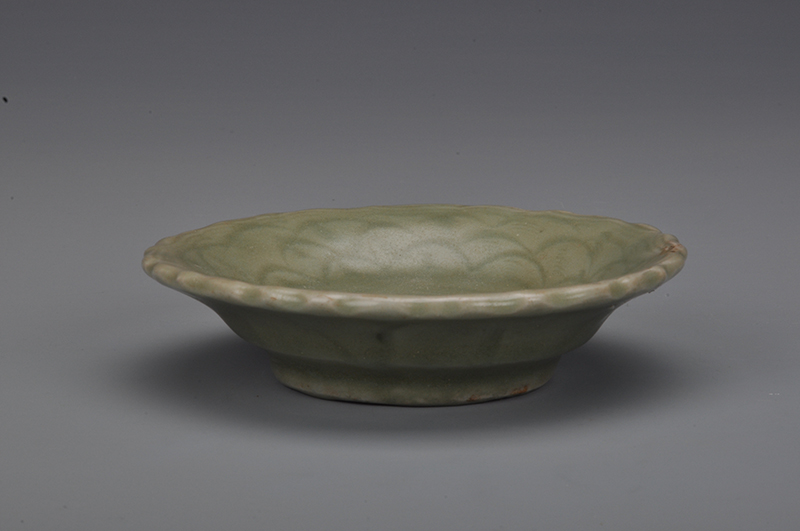 元青釉刻划海涛纹花口碟