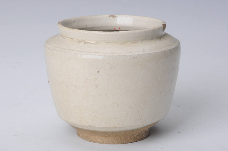 现代白釉折肩直口罐