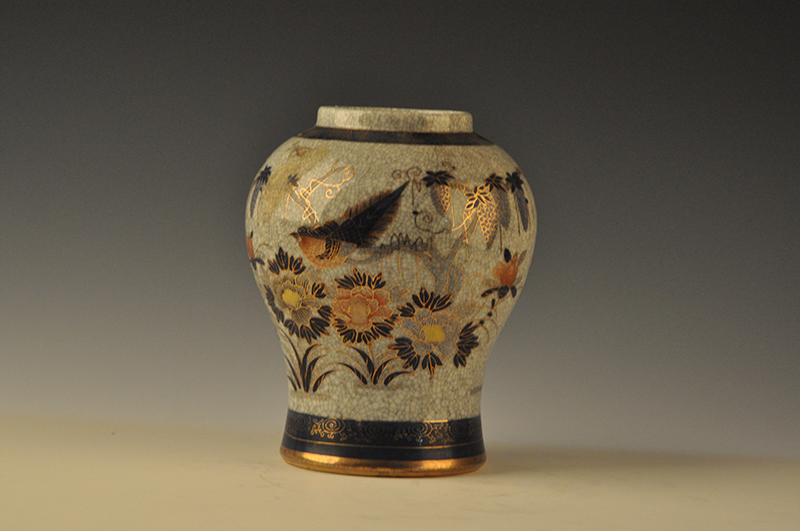 现代白釉描金加彩花鸟纹将军罐