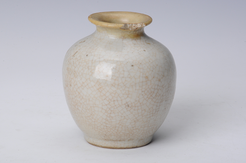 现代白釉冰裂纹卷沿罐
