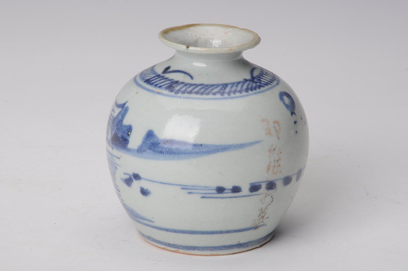 现代青花山水纹卷沿罐
