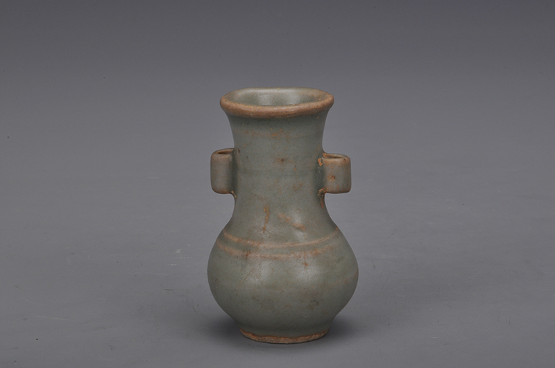 现代豆青釉双耳瓶