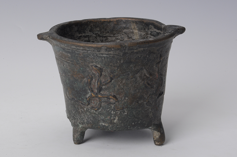 现代螭纹三足铜香炉