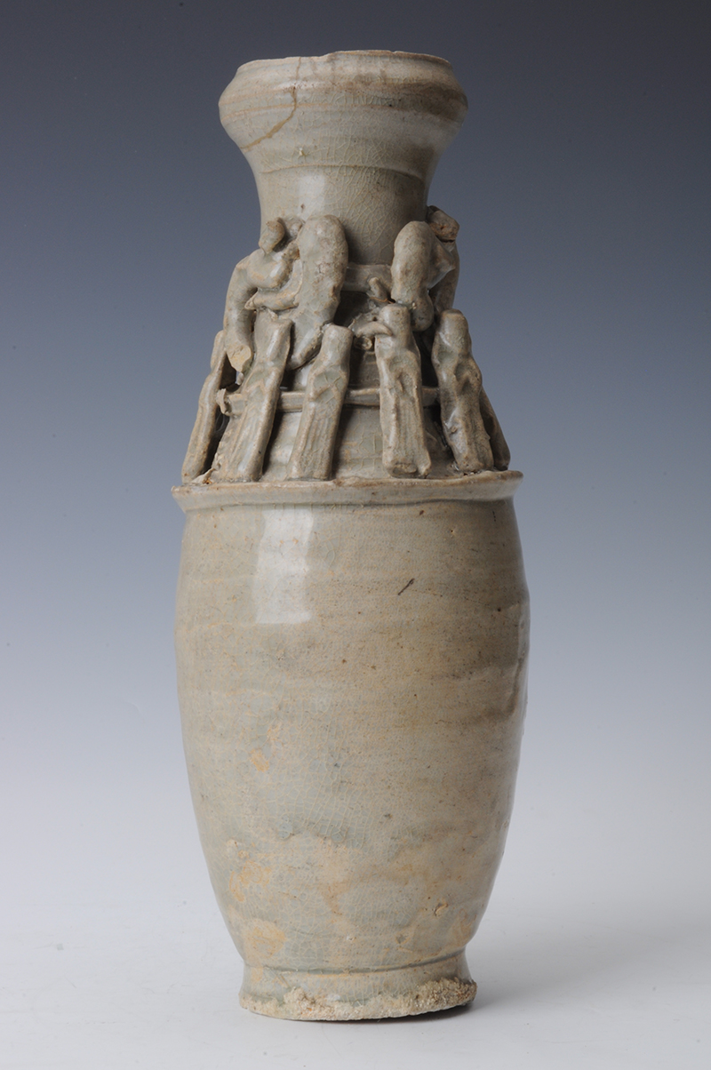 宋青釉堆塑虎纹瓶