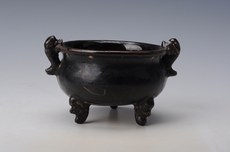 现代黑釉兽耳三足香炉