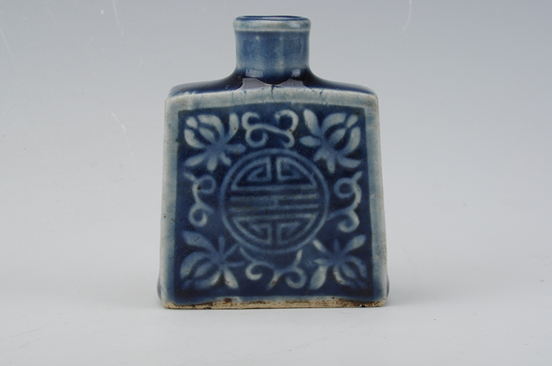 民国蓝釉寿字纹长方瓶