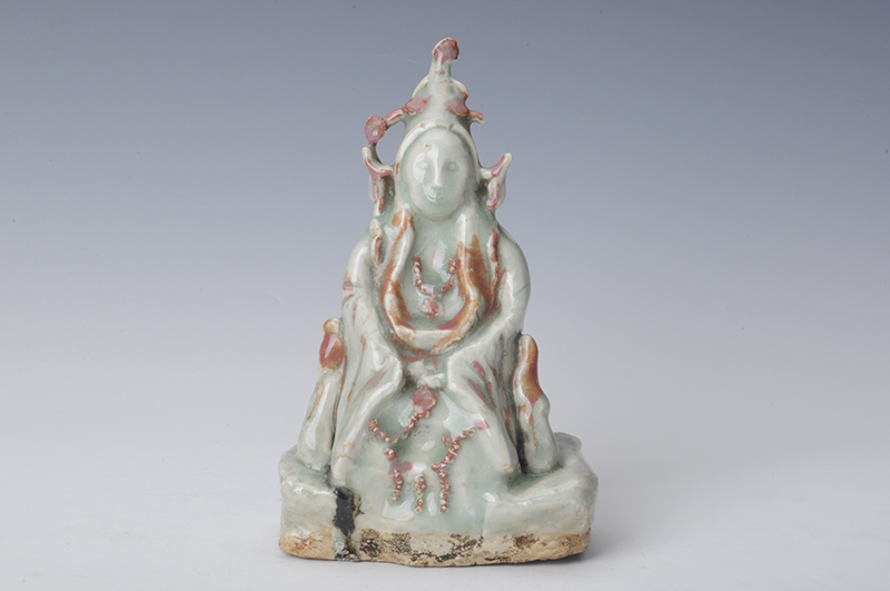 现代青釉釉里红神坐像