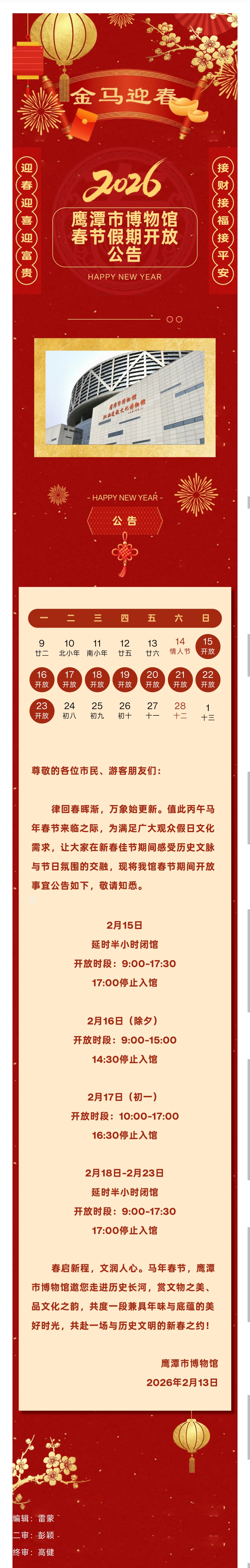 【延时开放】鹰潭市博物馆春节假期开放公告