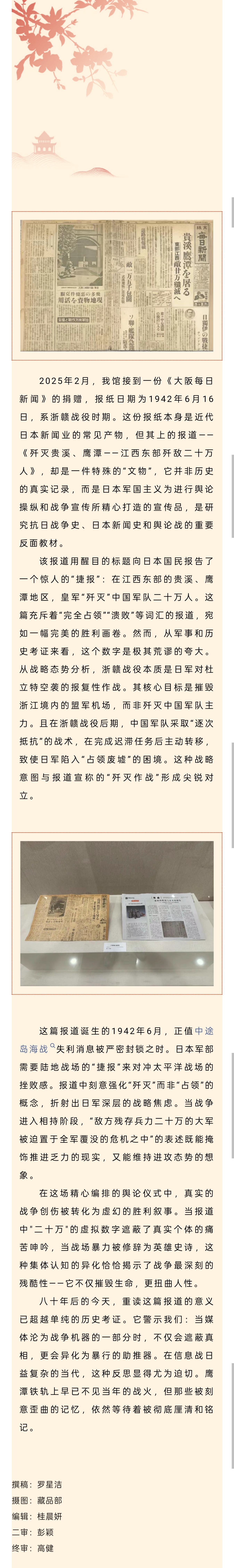 文物导赏|“山河铭记——鹰潭市纪念中国人民抗日战争暨世界反法西斯战争胜利八十周年文物展”——《大阪每日新闻》