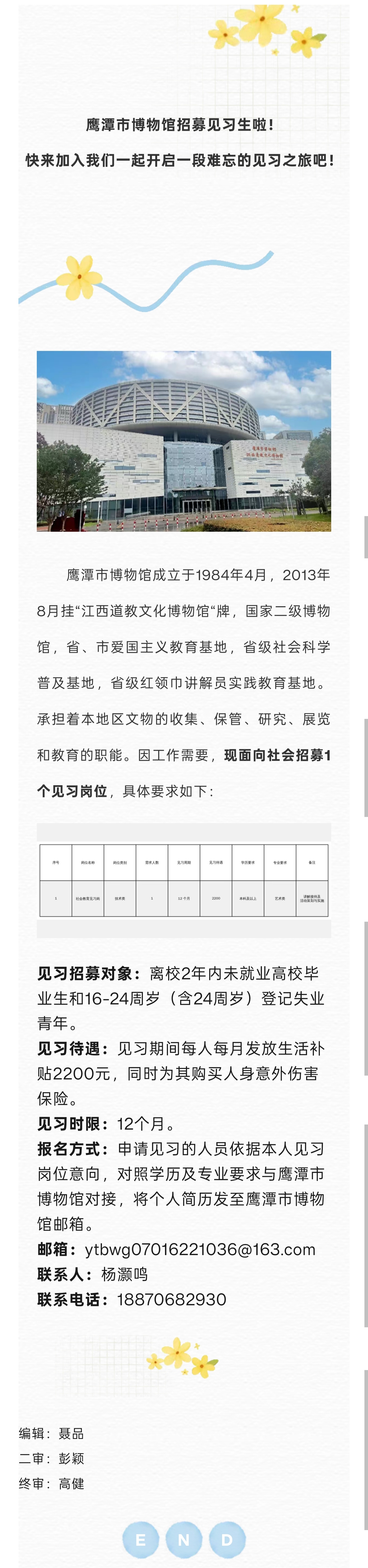 招1人!鹰潭市博物馆见习岗位招聘!